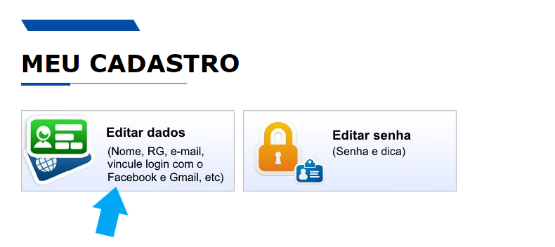 Em seguida, clique em “Meu cadastro” e “Editar dados”, conforme ilustração abaixo:
